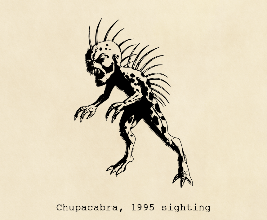 Illustrations of legendary cryptids (and one accurate Mesozoic reptile) for a critical thinking textbook.